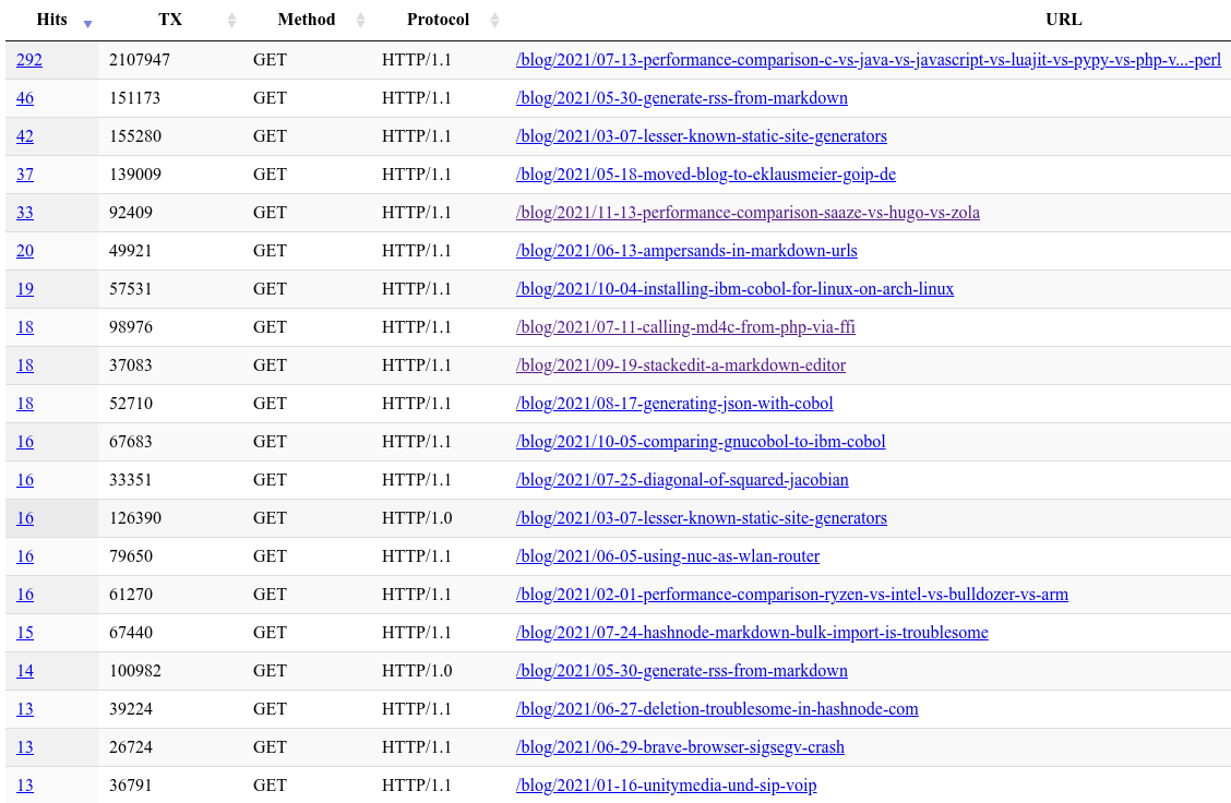 End of May 2021 I moved my blog from WordPress to self hosted, see Moved Blog To eklausmeier.goip.de. Now after roughly half a year I regained ca. half of the visitors I had on WordPress. Contrary to some murky SEO advice Google does not honor "noindex". I have below HTML code in all my WordPress posts:
